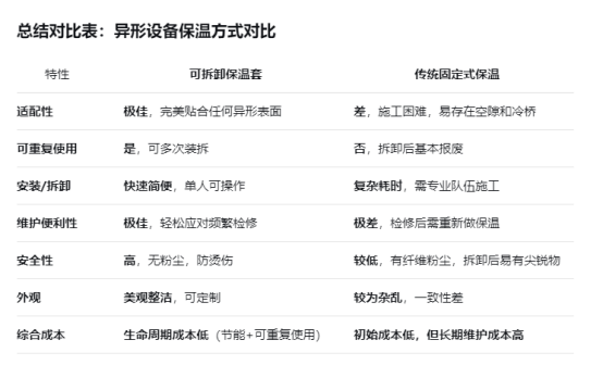 對于形狀不規則、需要頻繁維護或檢修的異形設備,使用可拆卸保溫套不是一種簡單的替代選擇,而是一種在保溫效率、維護便捷性、安全環保和長期經濟效益上都具有壓倒性優勢的現代化解決方案。它特別適用于石油化工、制藥、食品飲料、電力、新能源等對工藝溫度控制和設備維護要求高的行業。